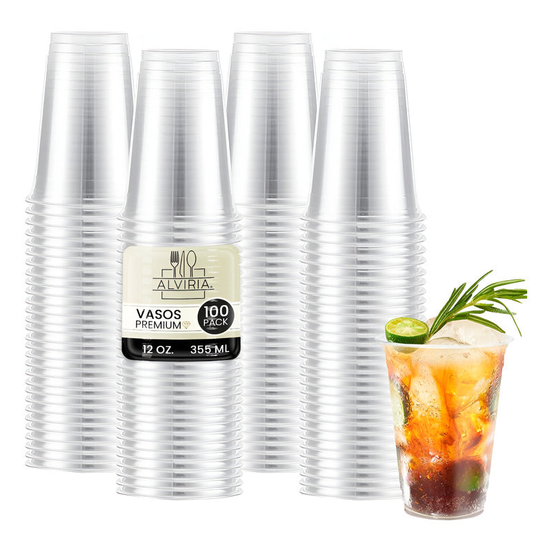100 Piezas Vasos Transparentes Elegantes 12 Onzas (355ml) Trasparente