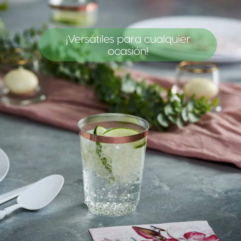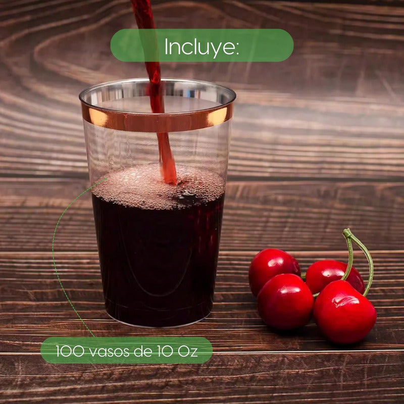 100 Vasos Reutilizables De Plástico Para Fiesta 10oz Alviria Dale un toque elegante y práctico a tus reuniones con este set de 100 vasos plásticos de 10 onzas Alviria. estos vasos transparentes destacan porque son reutilizables, reciclables y libres de BPA. Perfectas para bodas, fiestas, postres, cócteles y vino, aportan un toque sofisticado sin preocuparte por accidentes o limpieza. Fabricadas en plástico resistente, estas copas de 10 oz (296 mL) no se rayan ni se rompen. Su diseño apilable y liviano permite un almacenamiento práctico y cómodo transporte, ideal para eventos al aire libre, picnics o celebraciones variadas. Beneficios: •Diseño elegante con borde en oro rosa que eleva la presentación de tus bebidas. •Tamaño ideal de 10 oz, perfecto para jugos, refrescos, cocteles o agua. •Paquete de 100 vasos para que nunca falten en tus reuniones y eventos. •Reutilizables y reciclables, cuidando el medio ambiente mientras disfrutas de la practicidad. •libres de BPA, seguros y confiables para toda la familia y tus invitados. -------------------------------------------------------------------------------------------- ¿QUÍENES SOMOS? En Alviria nos especializamos en importar y ofrecer productos que combinan practicidad y estilo. Desde utensilios para cocina hasta artículos para mesa, cada pieza está pensada para hacer de lo cotidiano algo memorable. Creemos que lo funcional también puede lucir bien, y por eso cuidamos cada detalle de diseño y calidad. FACTURACIÓN Realizamos Facturación de todos nuestros productos. Escríbenos para compartirte el enlace de facturación. No realizamos facturas fuera de mes de compra. ••Recuerda que solo puedes facturar durante el mismo mes de tu compra••
