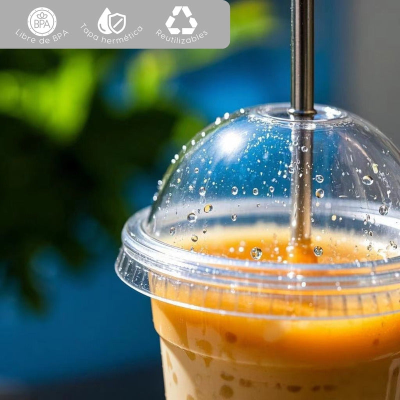 50 Vasos Desechables de Plástico 12 Oz con Tapa Tipo Domo Los vasos de plástico con tapa domo Alviria son prácticos, versátiles y funcionales para cualquier ocasión del día a día. Beneficios •El paquete incluye: 50 vasos y 50 tapas tipo domo, ideales para bebidas frías, batidos, café helado y otras preparaciones gourmet. •Alviria ofrece la solución perfecta para tu hogar, cafetería, oficina o negocio. Su diseño compacto permite almacenarlos fácilmente en dispensadores de vasos, ahorrando espacio y manteniendo todo en orden. •Fabricados con materiales de la más alta calidad, libres de BPA y de grado alimenticio, estos vasos evitan derrames, se apilan con facilidad y conservan la temperatura de tus bebidas por más tiempo. •Calidad Premium, adecuados para café frío o nitro, malteadas, tés, batidos, cocteles, refrescos, agua o jugos. -------------------------------------------------------------------------------------------- ¿QUÍENES SOMOS? En Alviria nos especializamos en importar y ofrecer productos que combinan practicidad y estilo. Desde utensilios para cocina hasta artículos para mesa, cada pieza está pensada para hacer de lo cotidiano algo memorable. Creemos que lo funcional también puede lucir bien, y por eso cuidamos cada detalle de diseño y calidad. FACTURACIÓN Realizamos Facturación de todos nuestros productos. Escríbenos para compartirte el enlace de facturación. No realizamos facturas fuera de mes de compra. ••Recuerda que solo puedes facturar durante el mismo mes de tu compra••