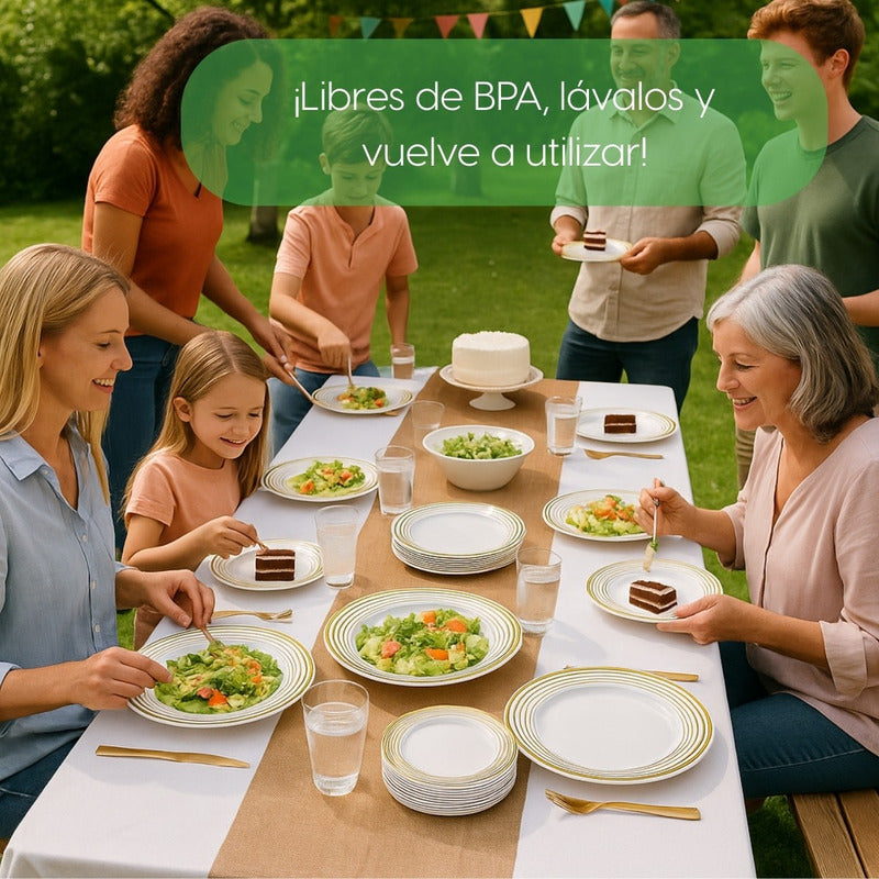 Set 50 Platos Elegantes Reutilizables Alviria Líneas Doradas Dorado Líneas